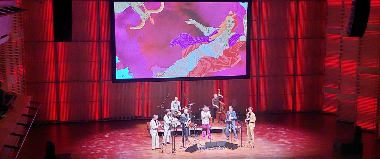 Drie dagen later, Muziekgebouw aan het IJ. Calefax rietkwintet viert haar 40 jarig bestaan met een reprise van hun project Dido en Aeneas. De opera van Henry Purcell hercomponeerden ze, samen met stertrompettist Eric Vloeimans. Toen ze zich opstelden voor het eerste deel, de ‘overture’ 3, zakte er een immens groot scherm uit het plafond boven hun hoofd. Er werd een afbeelding op geprojecteerd van een geblinddoekte Cupido die zijn pijl afschiet naar Dido. Zij wordt verliefd op Aeneas.