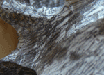 Zoals het skelet van de bekkenbodem van het menselijk lichaam. Maar complexer dan dat, niet symmetrisch, meer doorgang dan ligplaats, meer passeergang dan bekken. Alsof langsslijpende vloeistof de vormen heeft uitgehold en de huid van meerdere krochten plaatselijk onder de druk is verdwenen. | |