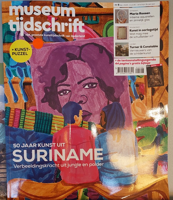 Op 25 november is het vijftig jaar geleden dat Suriname onafhankelijk werd van Nederland. Dat wordt zowel in Nederland als Suriname uitgebreid gevierd met onder meer een tentoonstelling in het Cobra Museum. Het Museumtijdschrift wijdt er een artikel aan vermeldt trots dat Hedy Tjin het omslag heeft mogen maken: “Al blijft het spannend om als hoofdredacteur de cover uit handen te geven. Het is tenslotte de eerste indruk van een nieuw nummer en die kun je maar één keer maken.” Aldus hoofdredacteur Jeroen Junte. En verder: “Door opzichtig een portret van Iris Kensmil te citeren maakt de cover contact met zowel de kijker als de levendige en meerstemmige kunsthistorie van Suriname. Bovendien oogt haar covertekening door het gebruik van alledaagse viltstiften net zo fris en kleurrijk als Suriname zelf.”