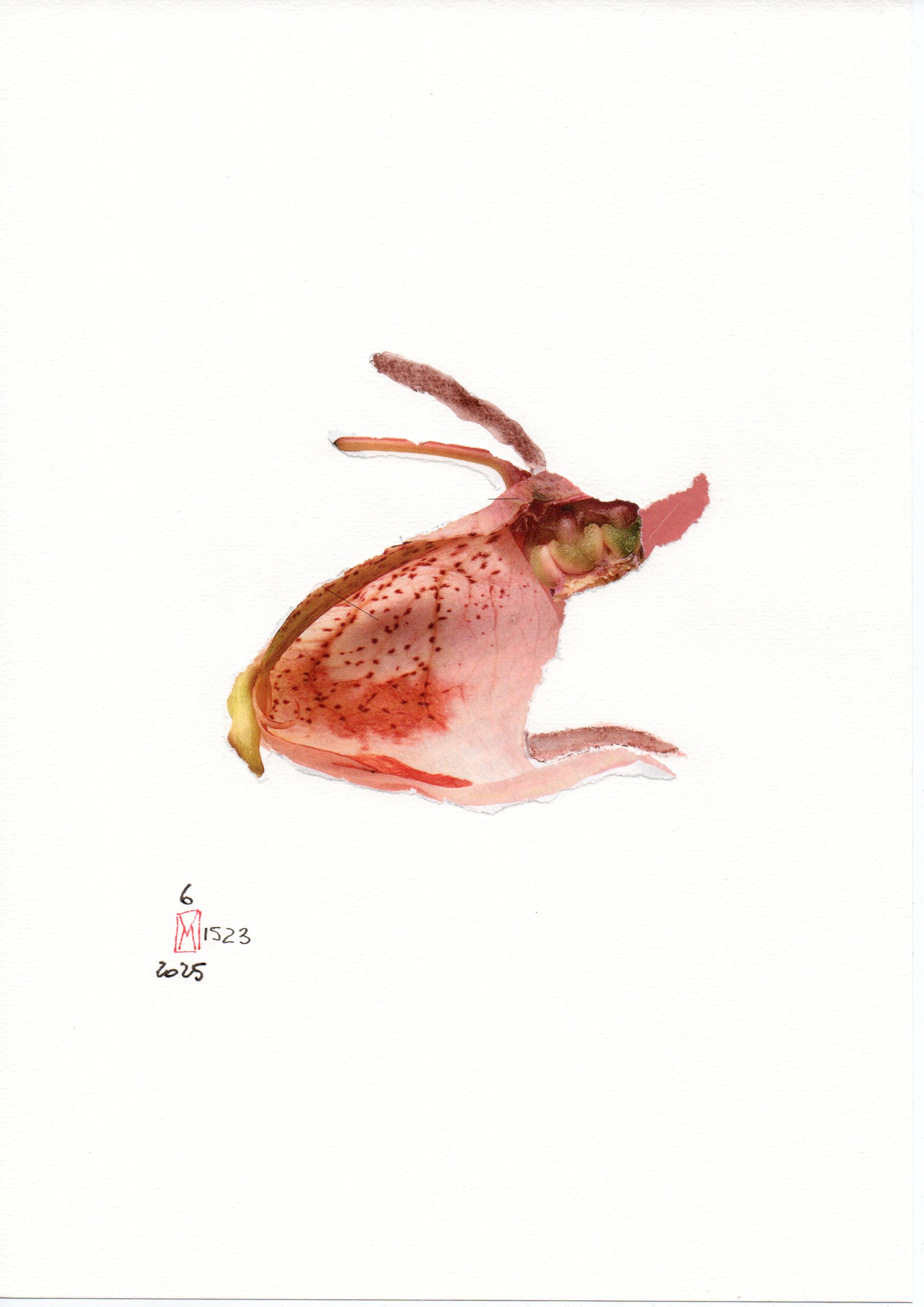 Het was rood en roze met een streep geel en wat bruin en het stak helder af tegen het wit.
